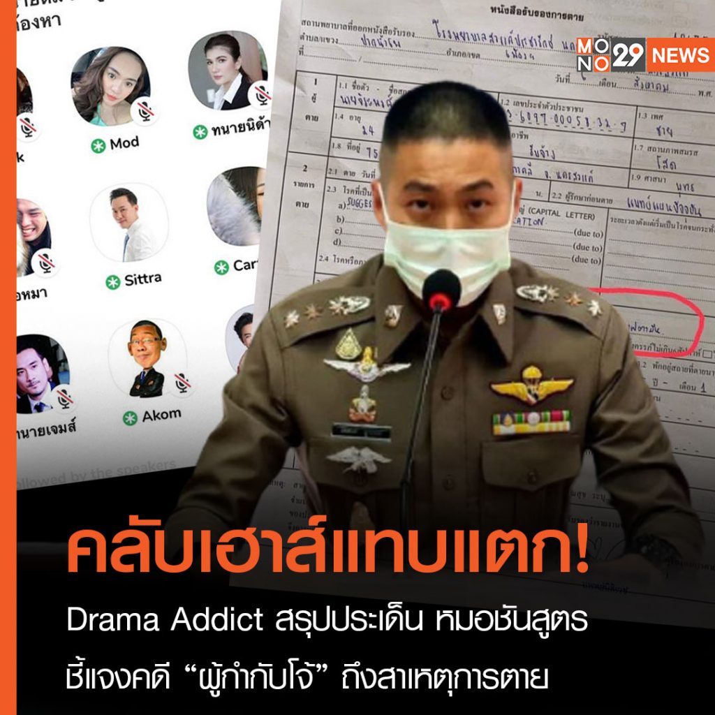 -คุณหมอพูดถึงประเด็นที่มีเพจนึงเผยผลแลปล่าุสดของผู้ตายว่า ไม่เจอสารเสพติดในเลือด คุณหมออธิบายว่า ถ้างั้นน่าจะแปรผลว่า ผู้ตายเคยมีประวัติเสพสารเสพติดมาก่อน นานแล้ว และเรื่องหัวใจนั่นก็เป็นผลจากการเสพในอดีตที่ไม่เกี่ยวข้องกับสาเหตุการตายปัจจุบัน