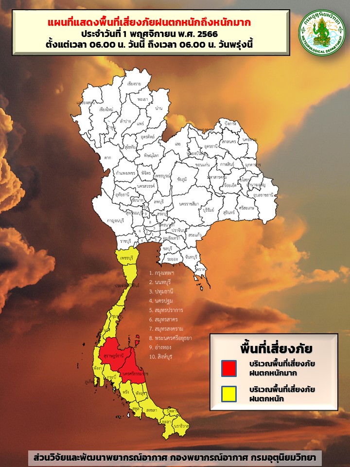 บริเวณจังหวัดเพชรบุรี ประจวบคีรีขันธ์ ชุมพร สุราษฎร์ธานี นครศรีธรรมราช