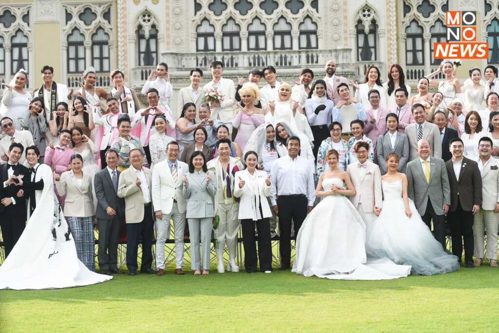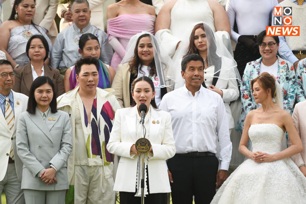 วันที่ 15 มกราคม 2568 ที่บริเวณสนามหญ้า หน้าตึกไทยคู่ฟ้า ทำเนียบรัฐบาล น.ส.แพทองธาร ชินวัตร นายกรัฐมนตรี ร่วมบันทึกภาพประวัติศาสตร์เพื่อประชาสัมพันธ์ เนื่องในโอกาสประกาศใช้กฎหมายสมรสเท่าเทียม โดยมี นายมาริษ เสงี่ยมพงษ์ รมว.การต่างประเทศ นายวราวุธ ศิลปอาชา รมว.การพัฒนาสังคมและความมั่นคงของมนุษย์ นายพิชัย นริพทะพันธุ์ รมว.พาณิชย์ น.ส.จิราพร สินธุไพร รมต.ประจำสำนักนายกรัฐมนตรี น.ส.ธีรรัตน์ สำเร็จวาณิชย์ รมช.มหาดไทย นายชัชชาติ สิทธิพันธุ์ ผู้ว่าราชการกรุงเทพมหานคร โรเบิร์ต เอฟ โกเดค เอกอัครราชทูตสหรัฐอเมริกาประจำประเทศไทย นายอัครนันท์ กัณณ์กิตตินันท์ สส.กาญจนบุรี พรรคเพื่อไทย คณะกรรมาธิการสมรสเท่าเทียม