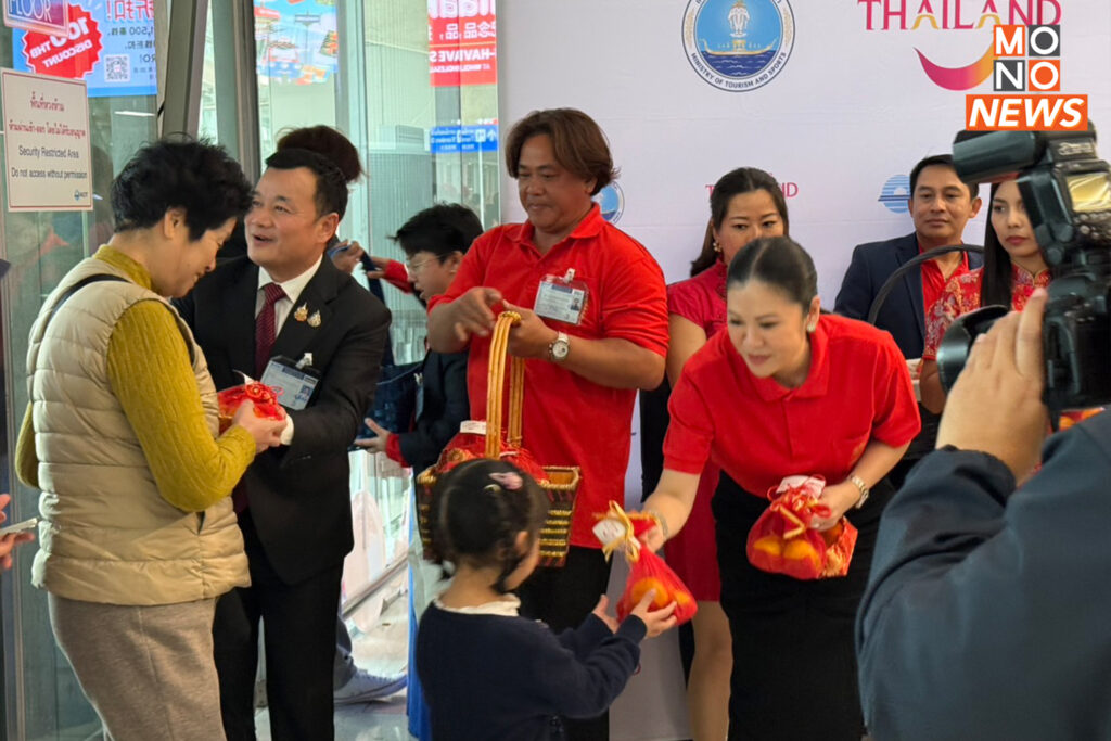 ขณะที่นายสรวงศ์ เทียนทอง รัฐมนตรีว่าการกระทรวงการท่องเที่ยวและกีฬา พร้อมด้วยอัครราชทูตที่ปรึกษาฝ่ายกิจการและวัฒนธรรม สถานเอกอัครราชทูตสาธารณรัฐประชาชนจีนประจำประเทศไทย ก็เดินทางมามอบถุงส้มนำโชค บรรจุส้มสายน้ำผึ้งไทย เป็นของที่ระลึกแก่นักท่องเที่ยวจีนที่เดินทางด้วยสายการบินไทย เที่ยวบิน TG 663 จากนครเซี่ยงไฮ้ ด้วยเช่นกัน เพื่อกระชับความสัมพันธ์ในวาระครบ 50 ปีทางการทูตไทย-จีน อีกทั้งเป็นการแสดงความยินดีกับประเทศจีน หลังจากยูเนสโกได้ขึ้นทะเบียน “เทศกาลตรุษจีน” เป็นมรดกวัฒนธรรมที่จับต้องไม่ได้ของมนุษยชาติ เมื่อวันที่ 4 ธันวาคม 2567 ที่ผ่านมา