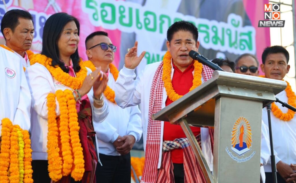 วันนี้ 29 ม.ค. 68 เวลา 16.30 น. ณ บริเวณสนามฟุตบอล รร.ศรีบุญเรืองวิทยาคาร อ.ศรีบุญเรือง จ.หนองบัวลำภู ร.อ.ธรรมนัส พรหมเผ่า สส.พะเยา พรรคกล้าธรรม อดีตรัฐมนตรีว่าการกระทรวงเกษตรและสหกรณ์ ได้ขึ้นเวที่ปราศรัยช่วยหาเสียงให้ นางศรัณยา สุวรรณพรหม หรือ เอ๋ ผู้สมัคร นายก อบจ.จังหวัดหนองบัวลำภู หมายเลข 3 และผู้สมัคร สมาชิก อบจ.ในนามกลุ่มหนองบัวคุณธรรม โดยมีประชาชนในพื้นที่มาร่วมรับฟังนโยบายและมอบดอกไม้ให้กำลังใจกว่า 1 หมื่นคน บรรยากาศเป็นไปด้วยความคึกคัก