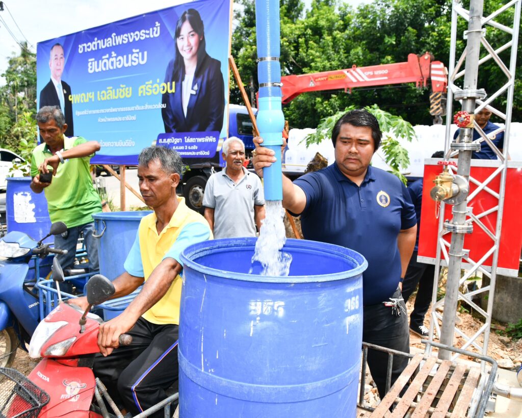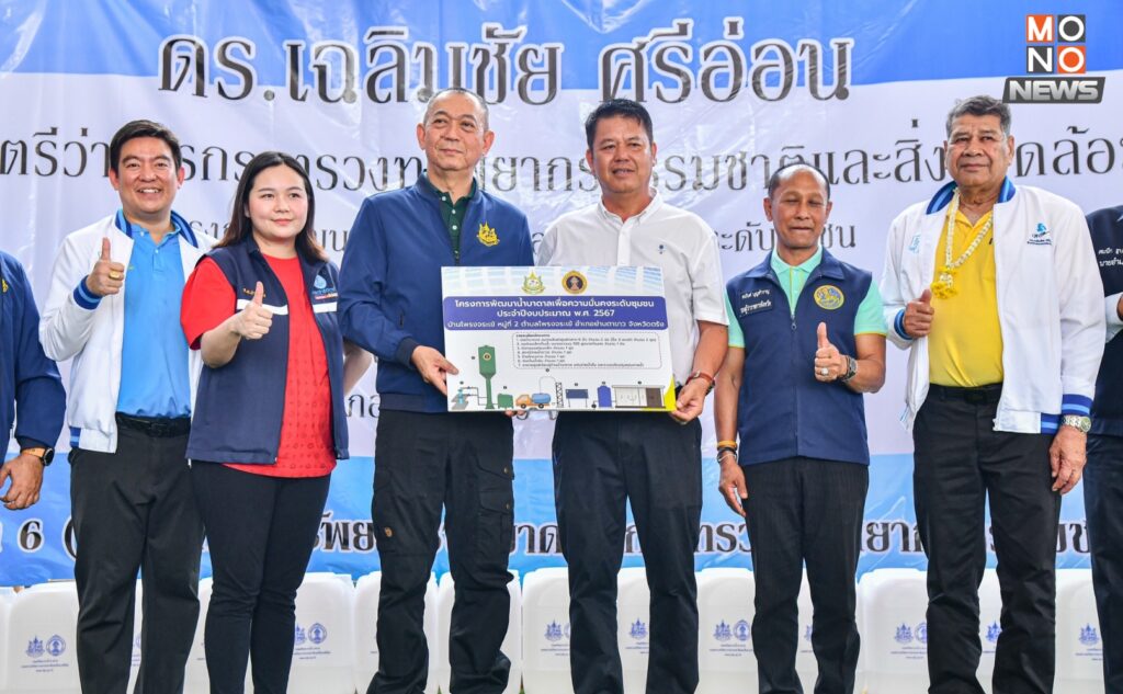 นาย เฉลิมชัย กล่าวว่า “วันนี้ กระทรวงทรัพยากรธรรมชาติและสิ่งแวดล้อม (ทส.) มีหน้าที่มาเพื่อแก้ไขปัญหาให้กับพี่น้องประชาชน ทั้งการแก้ไขปัญหาในพื้นที่ป่า และเรื่องน้ำ ที่ดูแลทั้งแหล่งน้ำบนดิน และการบริหารจัดการน้ำใต้ เพื่อให้พี่น้องประชาชนมีน้ำอุปโภคบริโภคไม่ขาดแคลน สำหรับพื้นที่ที่ขาดแคลนน้ำหรือมีปัญหาเรื่องคุณภาพน้ำ ทส. โดยกรมทรัพยากรน้ำบาดาล พร้อมเร่งเข้าสำรวจและดำเนินการจัดหาน้ำบาดาลเพื่อบรรเทาความเดือดร้อนและแก้ไขปัญหาให้พี่น้องประชาชนได้ภายในระยะเวลาประมาณ 5 – 6 เดือน นอกจากพื้นที่หมู่ที่ 2 ที่ได้รับระบบน้ำบาดาลในวันนี้แล้ว ทราบว่าพื้นที่หมู่ที่ 3 และหมู่ที่ 7 ก็ยังต้องเผชิญกับปัญหาเรื่องน้ำกินน้ำใช้อยู่ ในวันนี้ ได้มอบหมายให้กรมทรัพยากรน้ำบาดาล เร่งเข้าสำรวจและดำเนินการแก้ไขปัญหาให้กับประชาชนอย่างต่อเนื่องโดยเร็วที่สุด เพราะ “พี่น้องประชาชน คือ คนในครอบครัวของกระทรวงทรัพยากรธรรมชาติและสิ่งแวดล้อม” และอยากให้พี่น้องประชาชนมั่นใจว่า จะไม่มีทางขาดน้ำกินน้ำใช้อย่างแน่นอน”