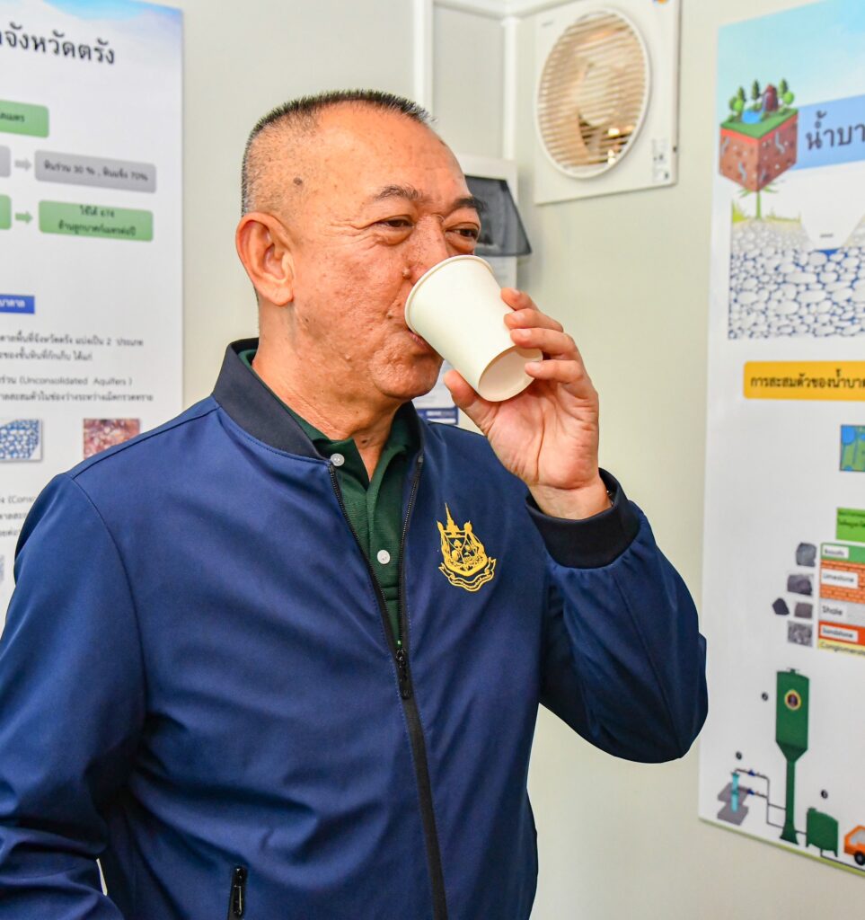 สำหรับโครงการพัฒนาน้ำบาดาลเพื่อความมั่นคงระดับชุมชน ประจำปีงบประมาณ พ.ศ. 2567 ณ บ้านโพรงจระเข้ หมู่ที่ 2 ตำบลโพรงจระเข้ อำเภอย่านตาขาว จังหวัดตรัง ประกอบด้วย บ่อบาดาล ขนาด 6 นิ้ว จำนวน 2 บ่อ หอถังสูง 23 เมตร ขนาดความจุ 100 ลูกบาศก์เมตร ระบบปรับปรุงคุณภาพน้ำ จำนวน 1 ชุด สามารถพัฒนาน้ำบาดาลขึ้นมาใช้ได้ไม่น้อยกว่า 90,000 ลูกบาศก์เมตรต่อปี ประชาชนได้รับประโยชน์ 1,959 ครัวเรือน หรือ 6,543 คน ซึ่งเพียงพอต่อความต้องการของประชาชนในพื้นที่