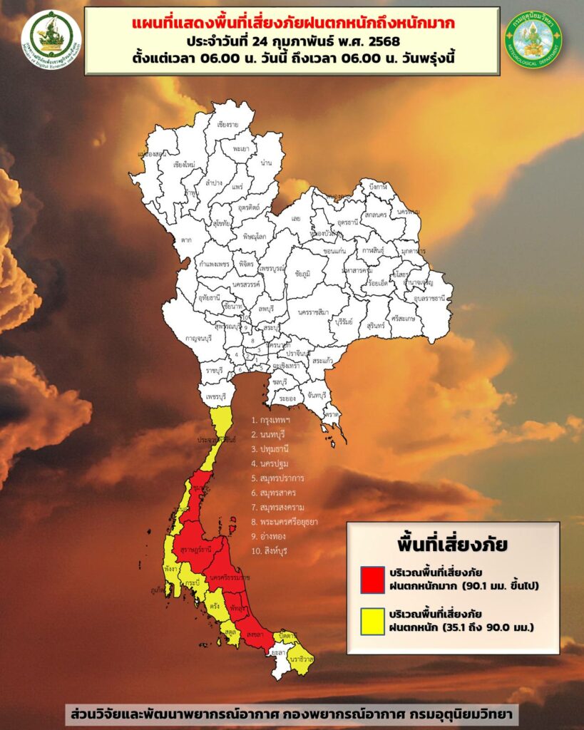 พยากรณ์อากาศสำหรับประเทศไทย 06:00 น. วันนี้ ถึง 06:00 น. วันพรุ่งนี้