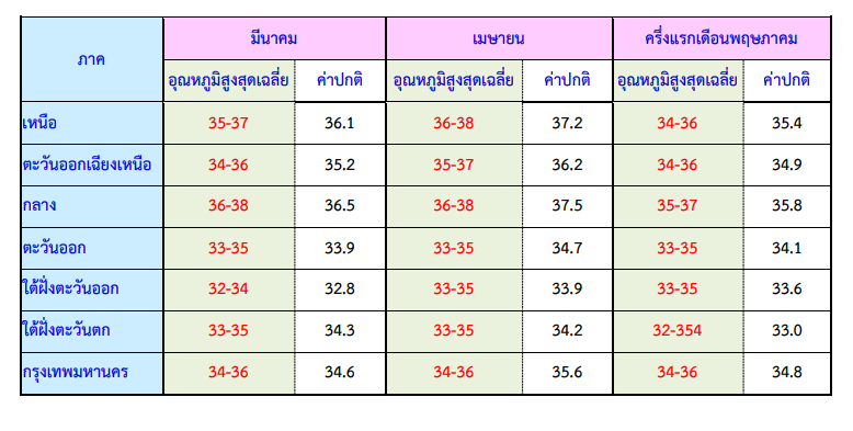 คาดหมายอุณหภูมิสูงสุดเฉลี่ยของไทยในช่วงฤดูร้อน 2568