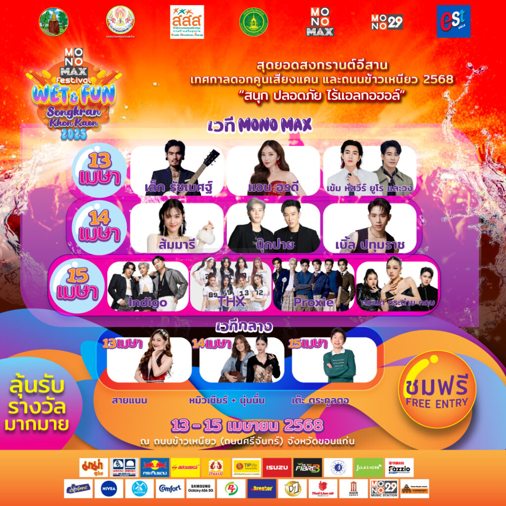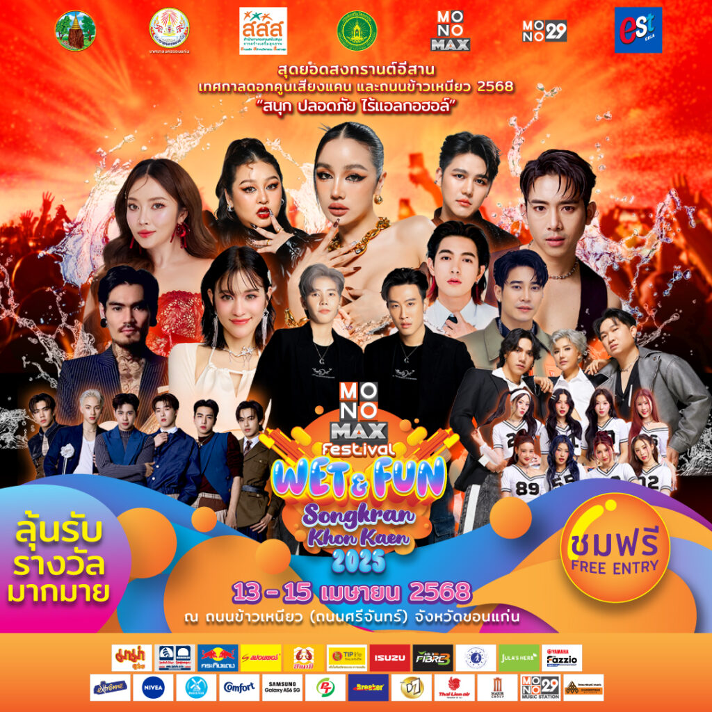 โดยปีนี้ก็เป็นอีกปี โมโนกรุ๊ปของเรา ร่วมกับ เทศบาลนครขอนแก่น ชวนคุณผู้ชมมาคลายร้อนที่ถนนข้าวเหนียวเช่นเคย และในงานมีลุ้นรับรางวัลมากมาย ภายใต้งาน “MONOMAX Festival Wet&Fun Songkran KhonKaen 2025” มาในแนวคิด “สุขีวิถีไทย รวมใจถนนข้าวเหนียว เที่ยวสนุกสาดถึงแก่น” และ “สนุก ปลอดภัย ไร้แอลกอฮอล์” ระหว่างวันที่ 13–15 เมษายน นี้