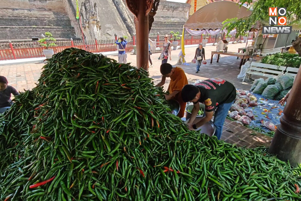 วันที่ 5 พฤษภาคม พริกสดน้ำหนักรวมกว่า 8,000 กิโลกรัม รวมทั้งฟักทองอีกจำนวนมากถูกนำไปรวบรวมไว้บริเวณลานวัดเจดีย์หลวง อ.เมืองเชียงใหม่ เพื่อแจกฟรีให้กับประชาชนนำไปทำอาหารช่วยลดค่าใช้จ่ายในครอบครัว โดยมีชาวบ้านพากันมารับพริกสดใส่ถังกลับบ้านกันตลอดทั้งวัน