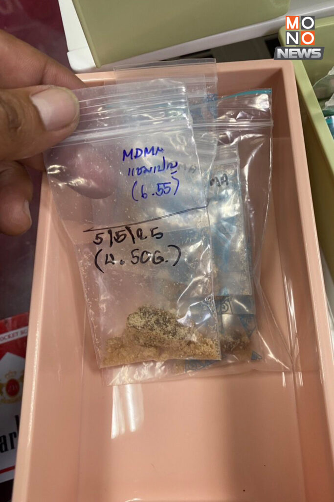 จากการตรวจค้นพบของกลางยาเสพติดจำนวนหลายรายการ โดยทั้ง 4 คนรับว่า ตนเองเป็นเจ้าของห้องรวมกันหมด และให้การรับว่าของกลางเป็นของตนเองจริง และตนเองได้เสพยาติด จึงได้ให้แพทย์ทำการตรวจยืนยันอีกครั้ง ผลการตรวจแพทย์ยืนยันว่ามีสารเสพติดประเภทเมทแอมเฟตามีนในปัสสาวะ