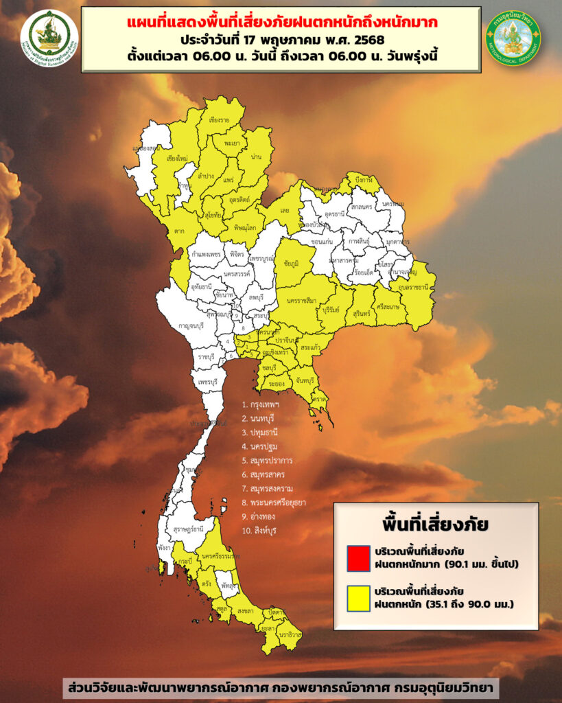 มีฝนฟ้าคะนอง ร้อยละ 70 ของพื้นที่ และมีฝนตกหนักบางแห่ง