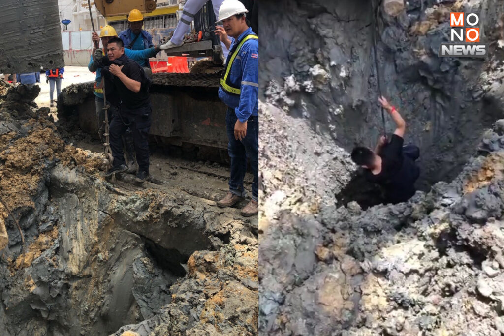 ส่วนเจ้าหน้าที่จราจรโครงการพระราชดำริ ที่โหนสลิงลงไปนั้นลงไปได้ประมาณ 10 เมตร พยายามเอามือคุ้ยดินภายในหลุมเพื่อให้ผู้ประสบภัยมีอากาศหายใจได้ แต่พบอุปสรรค คือดินมีลักษณะเหนียวประเมินแล้วคิดว่าสภาพพื้นที่มีความลึก จึงทำให้ลงไปได้เพียงแค่ 10 เมตร