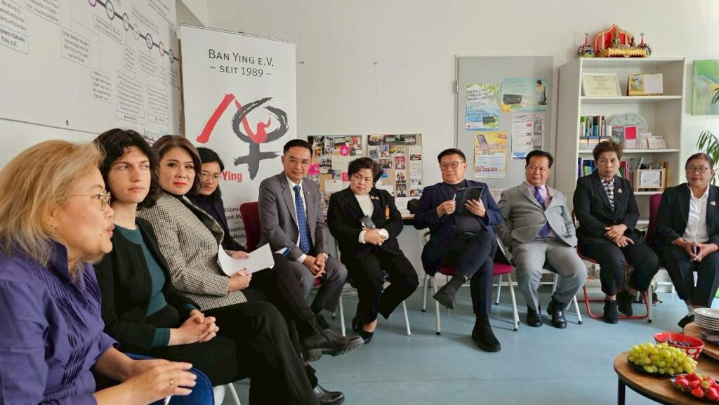 โดยมี Ms. Lea Rakovsky ผู้จัดการโครงการสมาคมบ้านหญิง และนางปาริชาติ ไพ ผู้ประสานงานของสมาคมบ้านหญิงให้การต้อนรับ พร้อมนำเสนอผลการดำเนินงานของสมาคม ซึ่งเป็นองค์กรเอกชนที่ไม่แสวงหากำไร จัดตั้งขึ้นตั้งแต่ปี ค.ศ. 1988 โดยนักสังคมสงเคราะห์ชาวเยอรมัน เพื่อทำหน้าที่เป็นศูนย์ให้คำปรึกษาแก่ชาวต่างชาติที่ประสบปัญหาในสหพันธ์สาธารณรัฐเยอรมนี โดยเฉพาะด้านความรุนแรงในครอบครัว ปัญหาทางกฎหมาย และอุปสรรคด้านภาษา