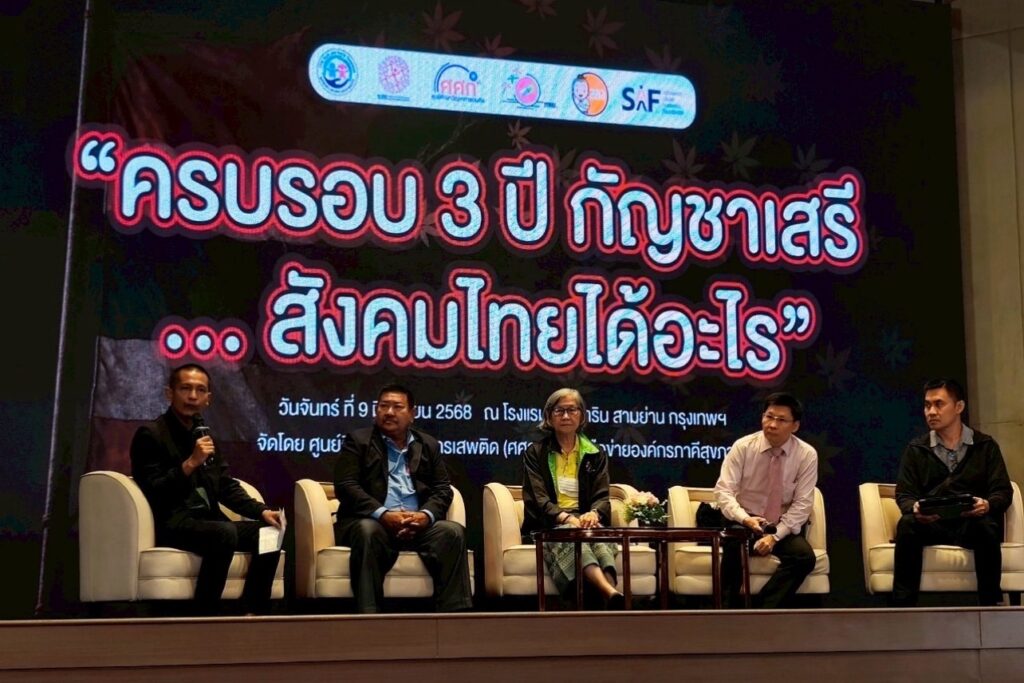 เมื่อวันที่ 9 มิถุนายน 2568 เครือข่ายสุขภาพและภาคประชาชนจัดเวทีเสวนา “ครบรอบ 3 ปี กัญชาเสรี…สังคมไทยได้อะไร” ที่โรงแรมแมนดาริน สามย่าน กรุงเทพฯ โดย รศ.พญ.รัศมน กัลยาศิริ ผู้อำนวยการศูนย์ศึกษาปัญหาการเสพติด (ศศก.) เปิดเผยว่า การปลดล็อกกัญชาเมื่อปี 2565 ทำให้ประเทศไทยกลายเป็นประเทศแรกในเอเชียที่อนุญาตให้ใช้กัญชาโดยไม่ผิดกฎหมาย ส่งผลให้จำนวนร้านค้าพุ่งโดยขาดการควบคุม โดยเฉพาะในพื้นที่ท่องเที่ยว วัยรุ่นอายุ 18-19 ปี มีอัตราการสูบกัญชาเพิ่มขึ้นจาก 0.9% (ปี 2562) เป็น 9.7% (ปี 2565) และมีผู้ป่วยโรคจิตหรือพิษจากกัญชาเพิ่มขึ้นชัดเจน คิดเป็นค่าใช้จ่ายด้านสุขภาพปี 2566 สูงถึง 15,828 ล้านบาท