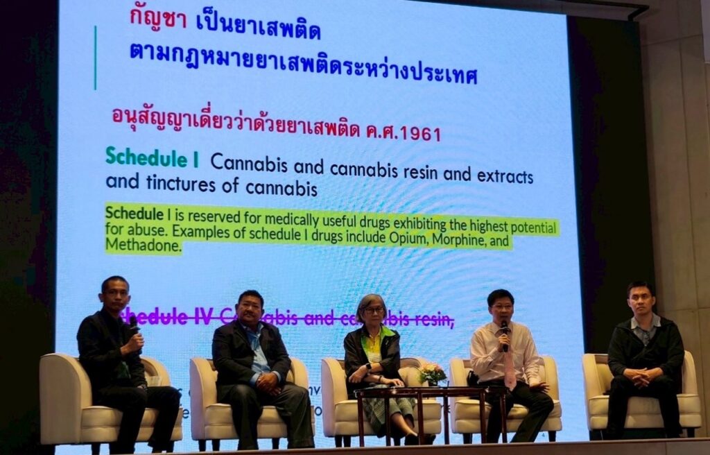 นายวัชรพงศ์ พุ่มชื่น จากมูลนิธิศูนย์วิชาการสารเสพติด กล่าวว่าหลายประเทศยังถือว่ากัญชาเป็นยาเสพติด และห้ามนำเข้าจากไทย รวมถึงสถานทูตอังกฤษที่หารือกับ ป.ป.ส. เพื่อสกัดการลักลอบนำออกนอกประเทศ สะท้อนความกังวลของนานาชาติ ขณะที่ นายไพศาล ลิ้มสถิตย์ จากคณะนิติศาสตร์ ม.ธรรมศาสตร์ ชี้ว่าการออกประกาศยกเลิกสถานะยาเสพติดของกัญชาใน พ.ศ. 2565 ส่งผลให้ถูกใช้ในทางนันทนาการโดยไร้การควบคุม แม้จะมีประกาศให้เป็นสมุนไพรควบคุมในภายหลังแต่ก็ยังไม่เพียงพอ จึงมีการรวบรวมรายชื่อประชาชนกว่า 20,000 รายเพื่อเสนอร่าง พ.ร.บ.กัญชา กัญชง ต่อรัฐสภา