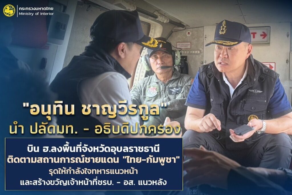 น.ส.ไตรศุลี ไตรสรณกุล เลขานุการรมว.มหาดไทยและโฆษกกระทรวงมหาดไทย กล่าวว่า วันนี้ (8 มิ.ย. 68) นายอนุทิน ชาญวีรกูล รองนายกรัฐมนตรีและรมว.มหาดไทย ลงพื้นที่ให้กำลังใจเจ้าหน้าที่และประชาชนที่พักอาศัยตามแนวชายแดนไทย-กัมพูชา ณ ศูนย์พัฒนาเขตพัฒนาพื้นที่ชายแดน บ้านทุ่งสมเด็จ หมู่ที่ 17 ต.โดมประดิษฐ์ อ.น้ำยืน จ.อุบลราชธานี โดยมี นายอรรษิษฐ์ สัมพันธรัตน์ ปลัดกระทรวงมหาดไทย นายไชยวัฒน์ จุนถิระพงศ์ อธิบดีกรมการปกครอง ว่าที่ พ.ต.อดิศักดิ์ น้อยสุวรรณ ผู้ว่าราชการจังหวัดอุบลราชธานี และผู้ว่าราชการจังหวัดภาคตะวันออกเฉียงเหนือที่มีพื้นที่ติดต่อกับแนวชายแดนประเทศกัมพูชา ผู้แทนหน่วยทหาร และส่วนราชการที่เกี่ยวข้อง ร่วมลงพื้นที่