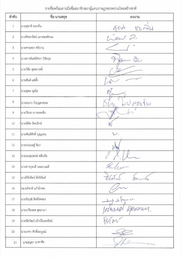 สำหรับรายชื่อ 21 สส.ประกอบด้วย สส.บัญชีรายชื่อ 7 คน ประกอบด้วย