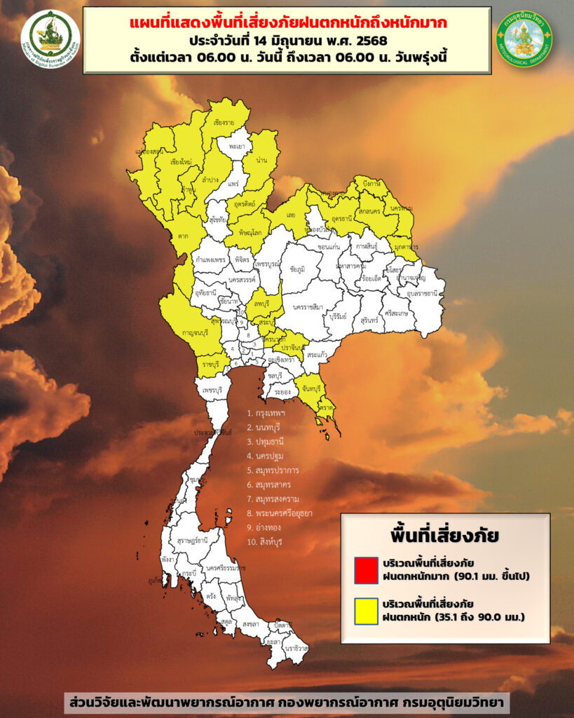 อนึ่ง พายุโซนร้อนกำลังแรง “หวู่ติบ” บริเวณอ่าวตังเกี๋ย คาดว่าจะเคลื่อนขึ้นฝั่งบริเวณมณฑลกวางตุ้ง ประเทศจีนในวันนี้(14 มิ.ย. 68) โดยพายุนี้ไม่เคลื่อนเข้าสู่ประเทศไทย ขอให้ผู้ที่จะเดินทางไปบริเวณดังกล่าวตรวจสอบสภาพอากาศก่อนออกเดินทางในช่วงวันดังกล่าวไว้ด้วย