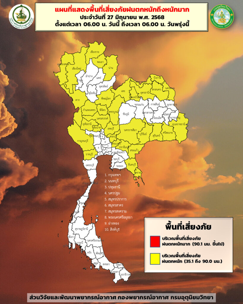 มีฝนฟ้าคะนอง ร้อยละ 70 ของพื้นที่ และมีฝนตกหนักบางแห่ง