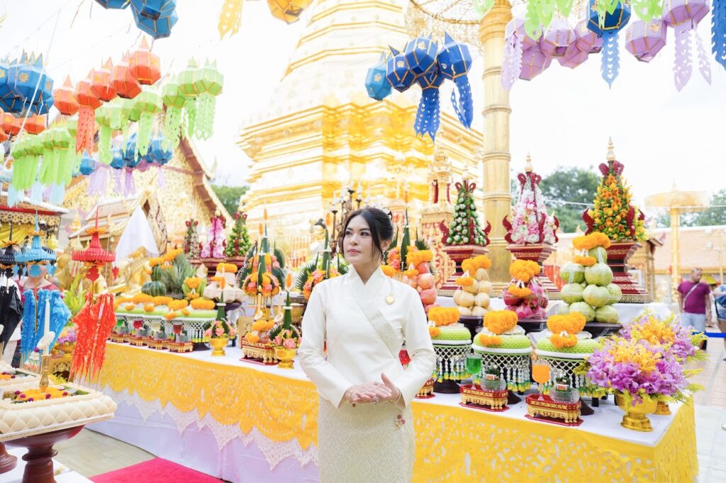 ที่วัดพระธาตุดอยสุเทพราชวรวิหาร อำเภอเมืองเชียงใหม่ จังหวัดเชียงใหม่ นางสาวกชพร เวโรจน์ หรือมาดามหยก และ คุณหยาดทิพย์ เทพหัสดิน ณ อยุธยา พร้อมด้วย หม่อมหลวงปุญยนุช เกษมสันต์ และพล.ต.ต.ณธนนต์ สิงหรา ณ อยุธยา ร่วมเป็นประธานในพิธีสักการะบวงสรวง พิธีเบิกเนตรองค์สมเด็จปฐมบรมมหาจักรพรรดิ พิธีเจริญพระพุทธมนต์นพเคราะห์ พิธีสืบชาตา แบบล้านนา โดยมีเจ้าอาวาสวัดพระธาตุดอยสุเทพฯ พระธรรมเสนาบดี (ธงชัย สุวณฺณสิริ) เป็นประธานสงฆ์ ในการประกอบพิธีเพื่อความเป็นสวัสดิมงคล พร้อมขอพรให้ประชาชนคนไทย มีความสุข เศรษฐกิจการเงินดีขึ้น รอดพ้นภาวะความขัดแย้งภายใน และภายนอกประเทศ
