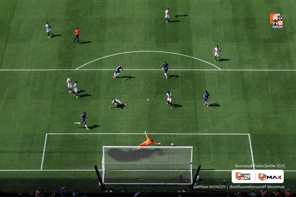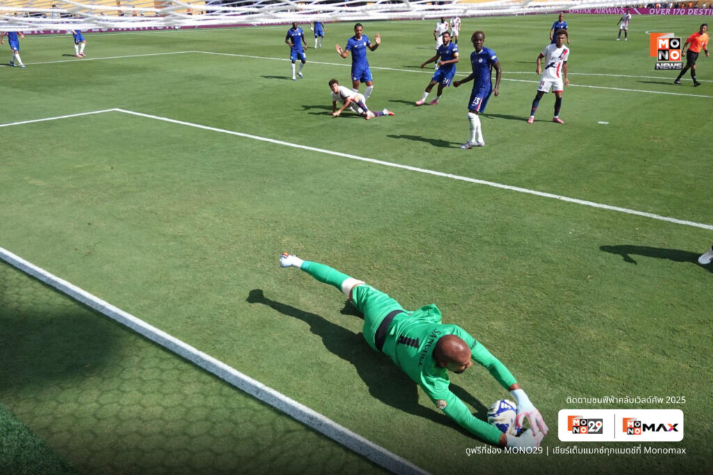 เกมหยุดโลกเริ่มต้นขึ้นท่ามกลางบรรยากาศสุดยิ่งใหญ่ โดยในช่วง 20 นาทีแรก ทั้งสองทีมต่างเล่นกันอย่างรัดกุมและพยายามชิงจังหวะในแดนกลาง แต่แล้วในนาทีที่ 22 สมดุลของเกมก็พังทลายลง เมื่อ มาโล กุสโต้ แบ็คขวาของเชลซีทะลุขึ้นมาทางฝั่งขวาก่อนจะจ่ายเข้ากลางให้ โคล พาลเมอร์ วิ่งเข้ามายิงด้วยซ้ายเสียบมุมเข้าไปอย่างเฉียบขาด เชลซีออกนำ 1-0