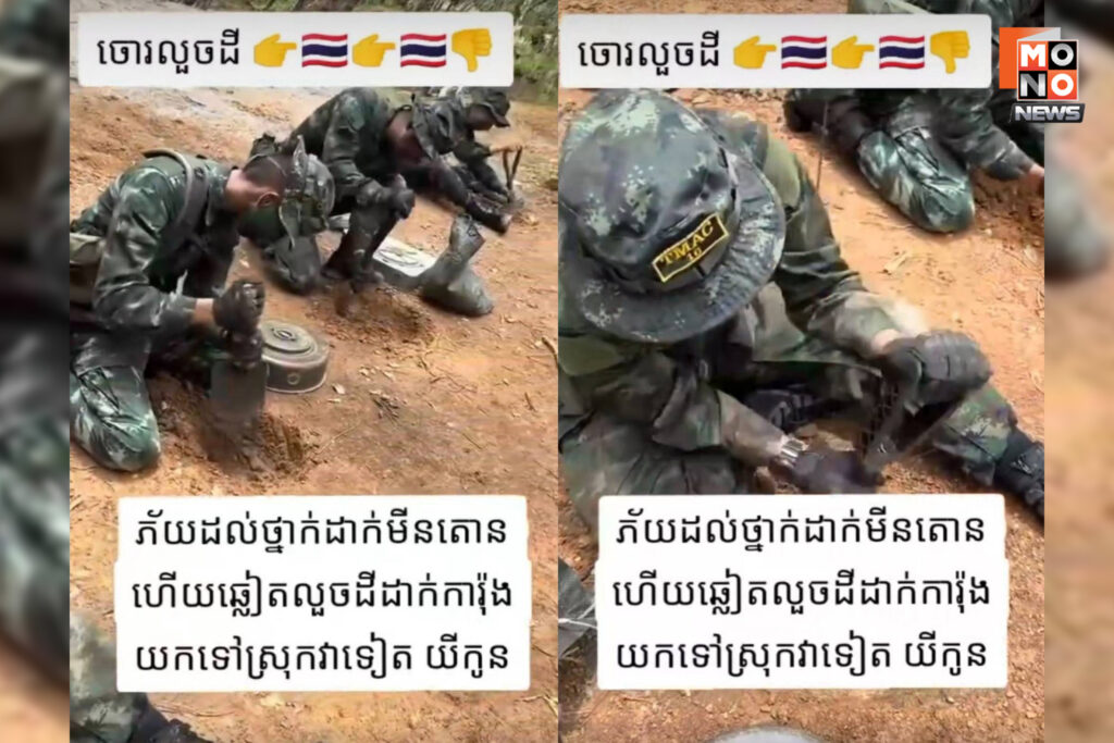 - ภาพถ่ายและคลิปวิดีโอที่เผยแพร่โดยสื่อ Fresh News ของกัมพูชา ซึ่งถูกนำเสนอว่าเป็นหลักฐานการวางระเบิดของทหารไทยนั้น ตรวจสอบแล้วพบว่าเป็นภาพจากภารกิจของศูนย์ปฏิบัติการทุ่นระเบิดเพื่อมนุษยธรรม (T-MAC) ในช่วงการฝึกเก็บกู้ หรือช่วงเวลาพักของกำลังพล ไม่ใช่การวางกับระเบิดแต่อย่างใด การนำเสนอข้อมูลในลักษณะดังกล่าวถือเป็นการบิดเบือนข้อเท็จจริง และสร้างความเสียหายต่อประเทศไทยอย่างร้ายแรง