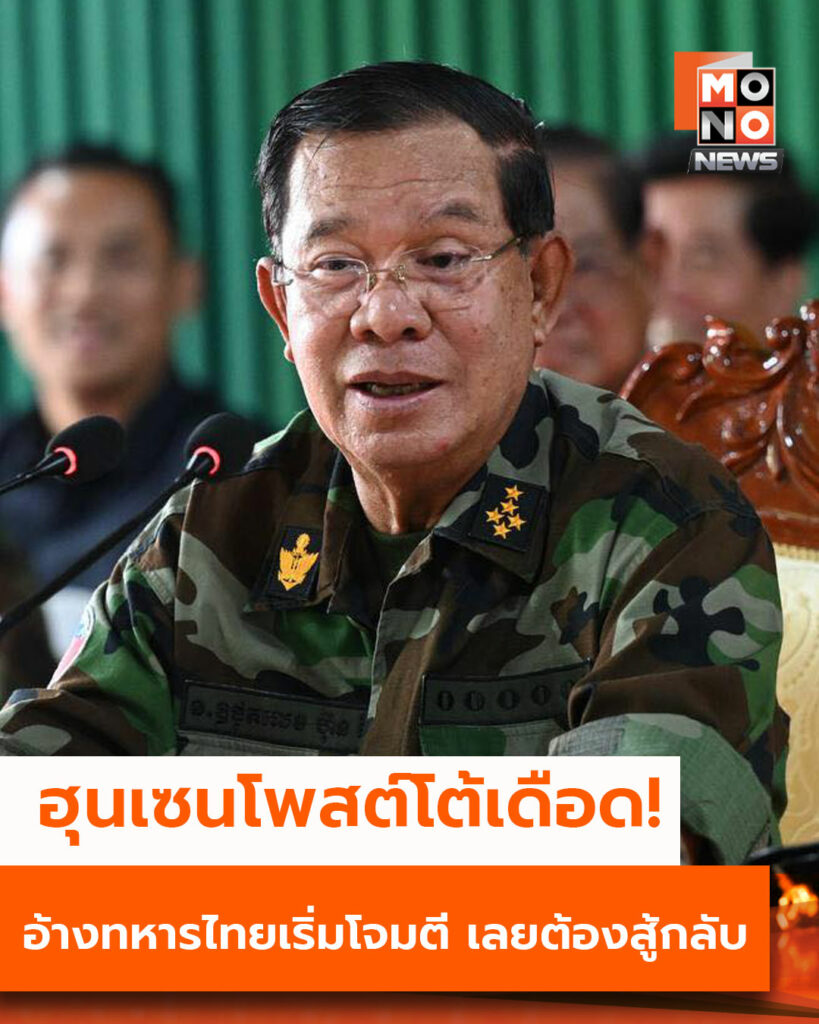 “ฮุน เซน” โพสต์ข้อความล่าสุด อ้างทหารไทยเริ่มโจมตีใกล้วัดไก่ใหญ่ กองทัพกัมพูชาไม่มีทางเลือกนอกจากตอบโต้ พร้อมขอประชาชนอย่าตื่นตระหนก