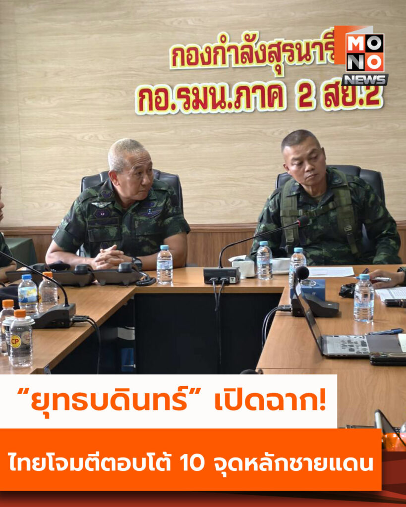 กองทัพบกเปิดปฏิบัติการ “ยุทธบดินทร์” ตอบโต้กัมพูชาทั้งทางบก-อากาศ บุกโจมตี 10 จุดยุทธศาสตร์ ย้ำคำขวัญ “เพื่อแผ่นดิน เพื่อประชาชน เพื่อศักดิ์ศรีไทย”