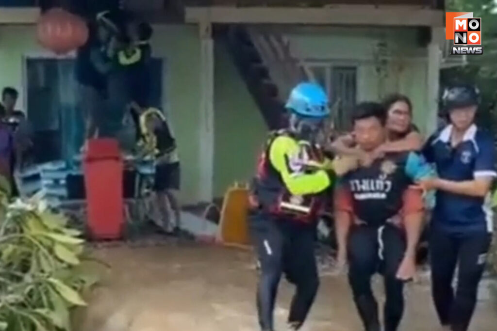 แต่สถานการณ์กลับไม่เป็นอย่างที่คิด เมื่อระดับน้ำที่ท่วมเพิ่มสูงขึ้น รวมถึงมีกระแสน้ำไหลแรงขึ้น จนทำให้บันไดบ้านพังลง ยายทั้ง 2 คน และน้องหมาอีก 2 ตัว จึงติดเกาะอยู่บนบ้านไม่สามารถออกมาข้างนอกได้ เพราะกลัวว่าจะได้รับอันตราย ญาติจึงได้แจ้งไปยังกู้ภัยบางแก้ว ให้ไปช่วยออกมา ก่อนส่งให้ญาติดูแลต่อไป
