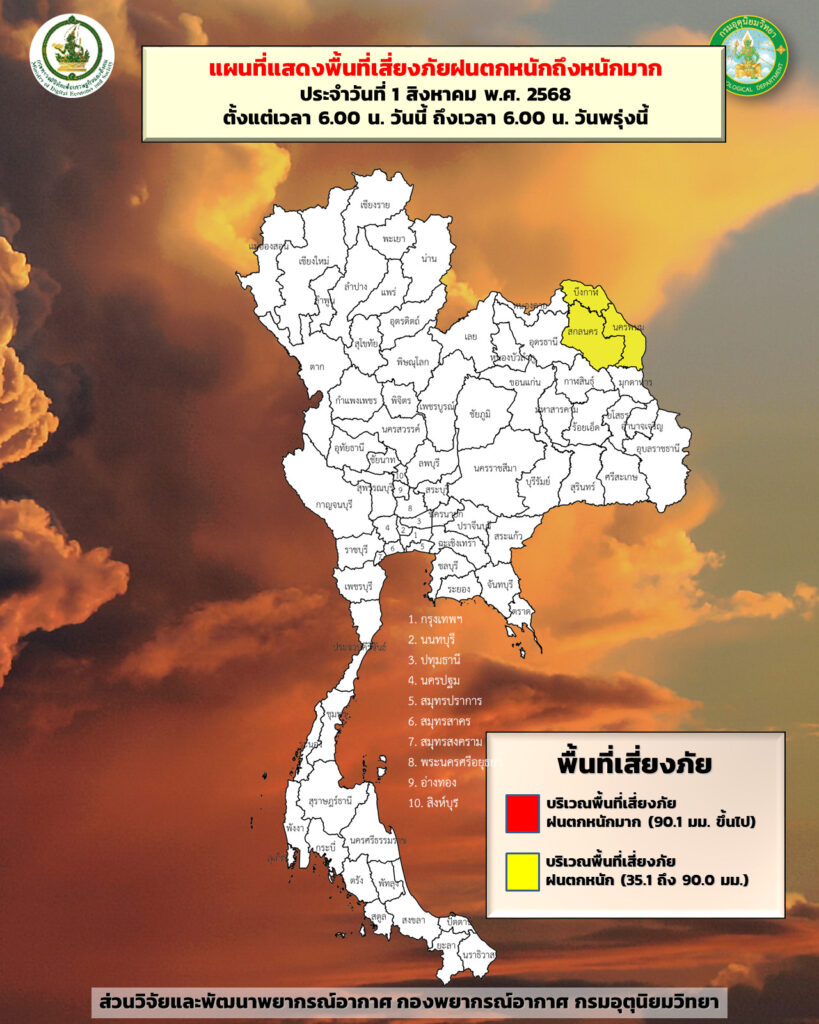 มรสุมตะวันตกเฉียงใต้กำลังอ่อนยังคงพัดปกคลุมทะเลอันดามัน ประเทศไทย และอ่าวไทย ประกอบกับมีหย่อมความกดอากาศต่ำปกคลุมบริเวณประเทศเวียดนามตอนบน ส่งผลให้ประเทศไทยมีฝนน้อย แต่ยังคงมีฝนตกหนักบางแห่งในภาคตะวันออกเฉียงเหนือตอนบน ขอให้ประชาชนในบริเวณดังกล่าวระวังอันตรายจากฝนตกหนักและฝนที่ตกสะสม