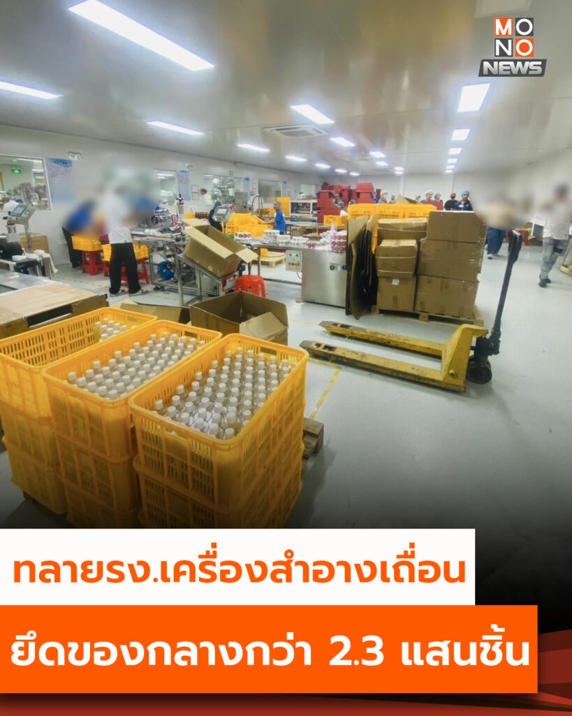 กองบัญชาการตำรวจสอบสวนกลาง (CIB) ร่วมกับสำนักงานคณะกรรมการอาหารและยา (อย.) และสำนักงานสาธารณสุขจังหวัดฉะเชิงเทรา ลงพื้นที่ตรวจค้นโรงงานลักลอบผลิตเครื่องสำอางโดยไม่ได้รับอนุญาต พบการนำเข้าวัตถุดิบจากต่างประเทศเพื่อนำมาต้ม กวน บรรจุ และติดฉลาก ก่อนส่งออกขายไปต่างประเทศ ตรวจยึดของกลางรวมกว่า 234,699 ชิ้น ทั้งเครื่องสำอาง 9 ประเภท เช่น บอดี้วอช โลชั่น แฮนด์ครีม และบาธบอมบ์ รวมถึงอุปกรณ์การผลิตและบรรจุภัณฑ์ รวมมูลค่ากว่า 20 ล้านบาท