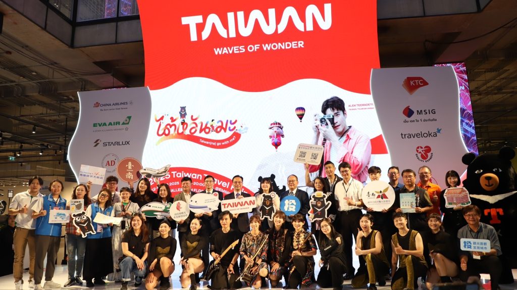 สำนักงานการท่องเที่ยว กระทรวงคมนาคมไต้หวัน ร่วมมือกับ 29 หน่วยงานและผู้ประกอบการกว่า 60 ราย จัดงาน “Taiwan Travel Fair 2025” ภายใต้ธีม Taiwan – Waves of Wonder ระหว่างวันที่ 12–14 กันยายน ที่ศูนย์การค้า EMSPHERE กรุงเทพฯ โดยได้รับเกียรติจากคุณปีเตอร์ หลัน ผู้แทนรัฐบาลไต้หวัน และคุณเฉิน อี้ถิง ผู้อำนวยการสำนักงานการท่องเที่ยวไต้หวัน กรุงเทพฯ ร่วมเปิดงาน ไฮไลต์ปีนี้คือ อาเล็ก ธีรเดช ในฐานะแบรนด์แอมบาสเดอร์ และการแสดงจากวง No One Else