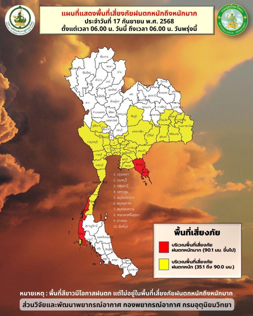 อนึ่ง พายุดีเปรสชันบริเวณด้านตะวันออกของประเทศฟิลิปปินส์มีแนวโน้มทวีกำลังแรงขึ้นเป็นพายุโซนร้อน และคาดว่าจะเคลื่อนขึ้นฝั่งบริเวณประเทศจีนตอนใต้ในช่วงวันที่ 19–20 กันยายน 2568