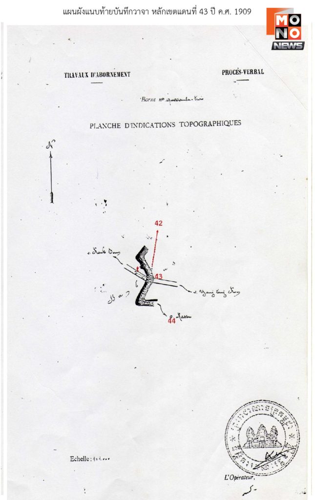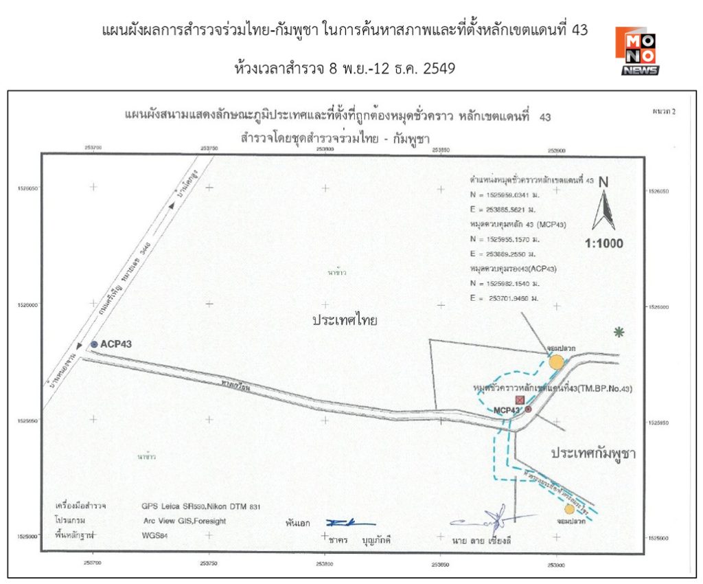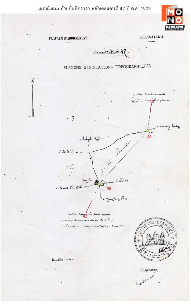 ผลการสำรวจร่วมทั้งหมด 74 หลัก รวมถึงหลักเขตแดนที่ 42 และ 43 ได้รับการรับรองแล้วในการประชุมคณะกรรมาธิการเขตแดนร่วมไทย–กัมพูชา (JBC) ครั้งที่ 6 เมื่อวันที่ 14 มิ.ย. 2568 แต่ยังไม่ได้มีการสำรวจแนวเขตแดนในส่วนของเส้นตรงระหว่างหลักทั้งสอง อย่างไรก็ตามในหลักฐานบันทึกวาจาและแผนผังแสดงที่ตั้งหลักเขตแดนทั้งสอง ซึ่งเป็นไปตามที่ระบุในบันทึกความเข้าใจ (MOU) ปี 2543 ได้ระบุแนวเขตแดนเป็นเส้นตรงระหว่างหลักทั้งสอง