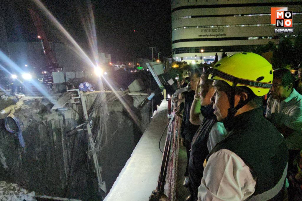 เมื่อถามว่าตึกสูงบริเวณโดยรอบจะป้องกันอย่างไร นายอนุทินกล่าวว่า กรมโยธาธิการและผังเมือง มีการตรวจสอบอยู่แล้ว โดยทั่วไปตึกสูง อย่างเช่นโรงพยาบาลวชิรพยาบาล มีที่จอดรถอยู่ใต้ดิน มีกำแพงกันดินไว้อยู่ชั้นหนึ่ง จะสังเกตได้ว่าการถล่มของดิน ในฝั่งที่เป็นอาคารเตี้ยอยู่อีกฝั่งนึงของถนน ตอนนี้เร่งอพยพผู้คนออกมา ปิดการใช้งานไม่มีผู้คนอยู่ในนั้น แล้วการรถไฟฟ้าขนส่งมวลชน คงมีแผนว่าจะทำอย่างไรกับอาคารเหล่านั้นที่จะไปเสริมเพราะมีบางส่วนที่เสาเข็มขาด ให้กลับมาอย่างไรให้เป็นสภาพปัจจุบันซึ่งต้องคำนึงถึงความปลอดภัย