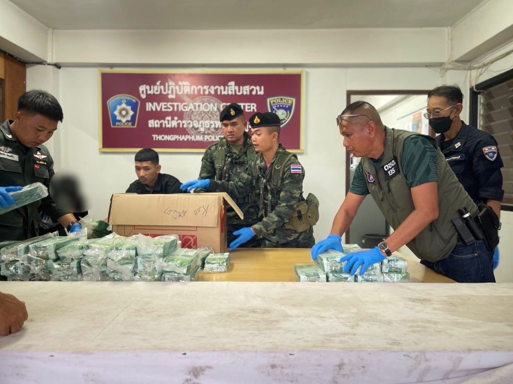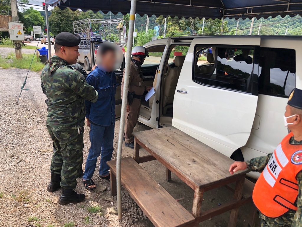 โดยในเวลา 12.00 น. เจ้าหน้าที่ฝ่ายความมั่นคง ประจำจุดตรวจร่วมสามแยกทองผาภูมิ พบรถยนต์ ยี่ห้อ Toyota Alphad สีขาว หมายเลขทะเบียน กล 5467 กาญจนบุรี ลักษณะตรงตามที่ได้รับแจ้งจากแหล่งข่าว ขับมาจาก อ.สังขละบุรี มุ่งหน้า อ.เมืองกาญจนบุรี จึงให้สัญญาณหยุดรถเพื่อตรวจสอบ พบ นายชนาธิป แสวงศิลป์ อายุ 51 ปี เป็นผู้ขับขี่ ซึ่งขณะที่เจ้าหน้าที่พูดคุยสอบถาม แสดงอาการพิรุธ จึงทำการตรวจค้นภายในรถยนต์คันดังกล่าวพบว่าสภาพรถถูกดัดแปลงและซุกซ่อนยาเสพติด ไว้ภายในจำนวนมาก โดยตรวจยึดของกลาง 5 รายการ