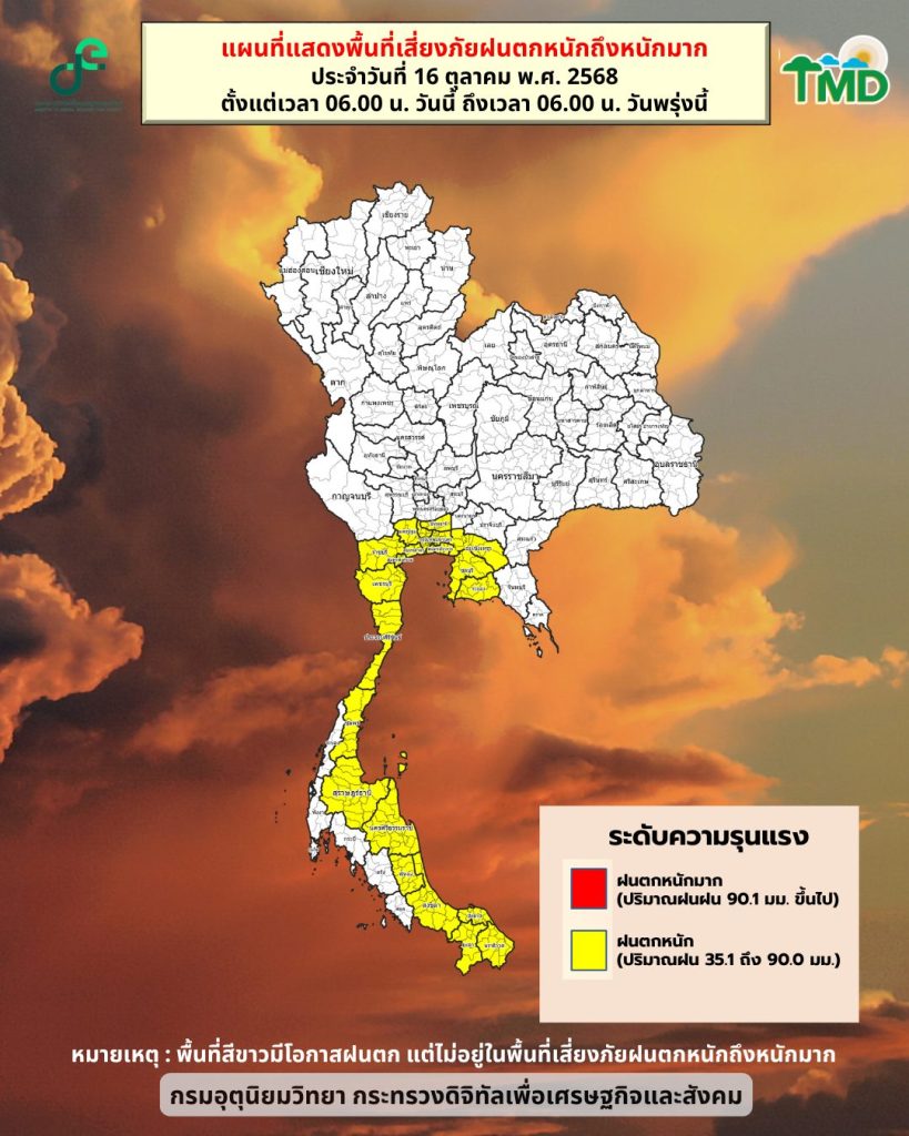 ประเทศไทยมีฝนลดลงจากเมื่อวาน เว้นแต่ภาคใต้มีเพิ่มขึ้น และฝนตกหนักบางพื้นที่ เนื่องจากลมตะวันออกและลมตะวันออกเฉียงใต้พัดปกคลุมประเทศไทย อ่าวไทย และทะเลอันดามัน ขอให้ประชาชนในบริเวณดังกล่าวระวังอันตรายจากฝนฟ้าคะนอง ฝนตกหนัก และฝนที่ตกสะสม รวมทั้งเพิ่มความระมัดระวังในการสัญจรผ่านบริเวณที่มีน้ำท่วมขัง ควรพกร่มและเสื้อกันฝนเมื่อออกนอกบ้านในระยะนี้ไว้ด้วย