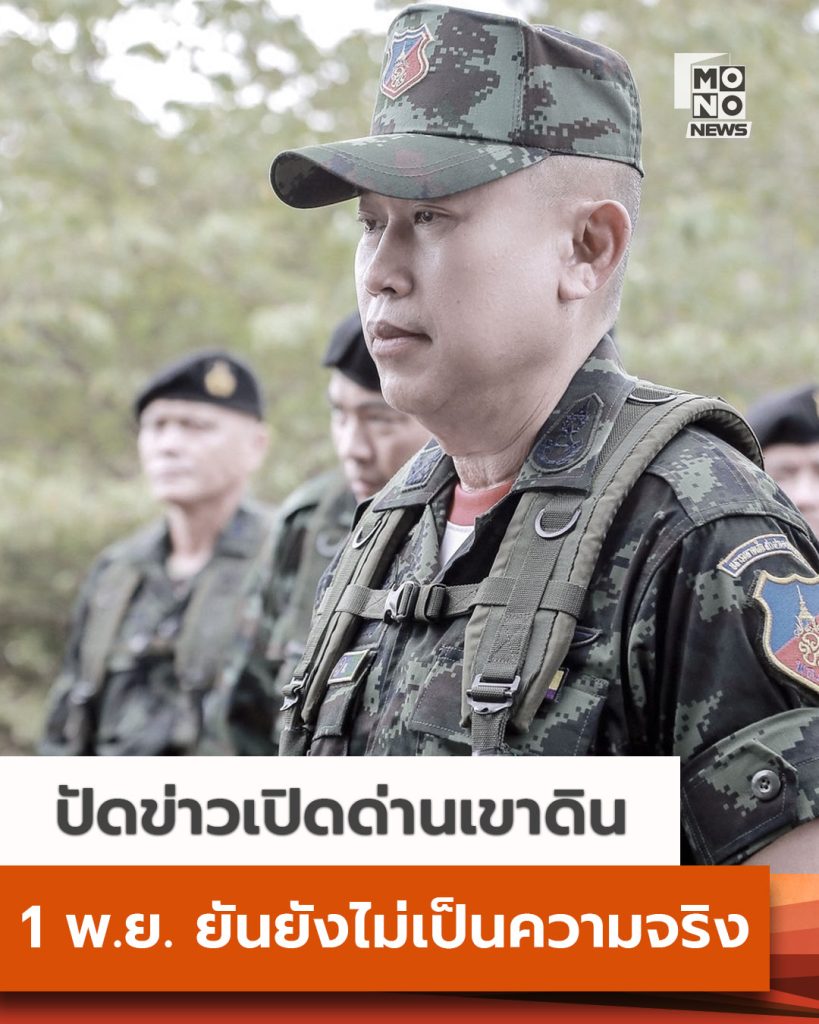 พลโท วรยส เหลืองสุวรรณ แม่ทัพภาคที่ 1 ยืนยัน ข่าวเปิดด่านถาวรไทย–กัมพูชาที่บ้านเขาดิน จ.สระแก้ว วันที่ 1 พฤศจิกายนนี้ ไม่เป็นความจริง หลังมีนักเคลื่อนไหวให้ข้อมูลต่อสื่อ