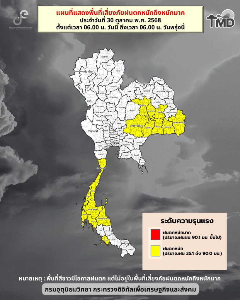 - มีฝนฟ้าคะนอง ร้อยละ 60 ของพื้นที่ และมีฝนตกหนักบางแห่ง