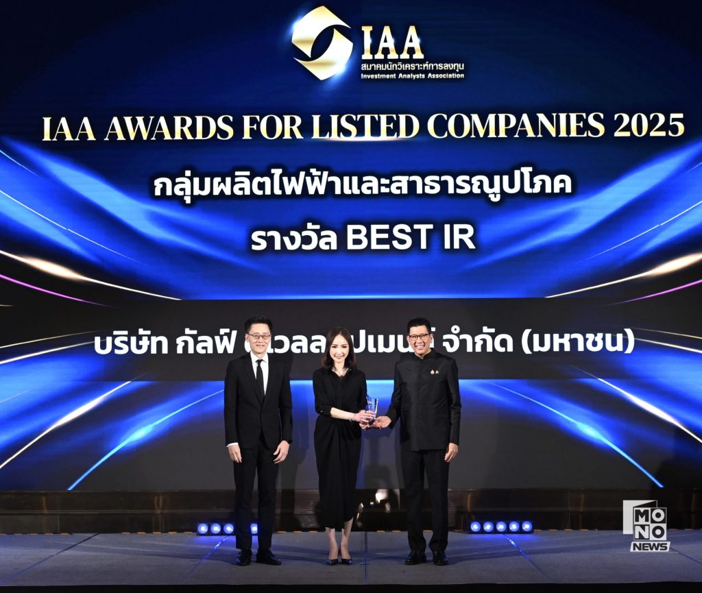บริษัท กัลฟ์ ดีเวลลอปเมนท์ จำกัด (มหาชน) (GULF) คว้า 3 รางวัลยอดเยี่ยมในกลุ่มผลิตไฟฟ้าและสาธารณูปโภค จากเวที IAA Awards for Listed Companies 2025 ประกอบด้วย รางวัล BEST CEO ที่มอบให้นายสารัชถ์ รัตนาวะดี ประธานเจ้าหน้าที่บริหาร รางวัล BEST CFO ให้แก่นางสาวยุพาพิน วังวิวัฒน์ ประธานเจ้าหน้าที่บริหารด้านการเงิน รวมถึงรางวัล BEST IR มอบแก่บริษัทในฐานะองค์กรนักลงทุนสัมพันธ์ยอดเยี่ยม สะท้อนศักยภาพผู้บริหารในตลาดทุนที่มีศักยภาพโดดเด่น ความเป็นเลิศในการบริหารงาน และสะท้อนมาตรฐานความเป็นเลิศในการให้ข้อมูลทางการเงินที่ถูกต้อง ครบถ้วน และทันท่วงที เพื่อให้นักลงทุนเห็นศักยภาพการเติบโตขององค์กรที่ขับเคลื่อนควบคู่ไปกับกลยุทธ์ด้านความยั่งยืน ซึ่งนับว่าเป็นส่วนสำคัญอย่างยิ่งต่อการเติบโตของเศรษฐกิจตลาดทุน และประเทศไทย