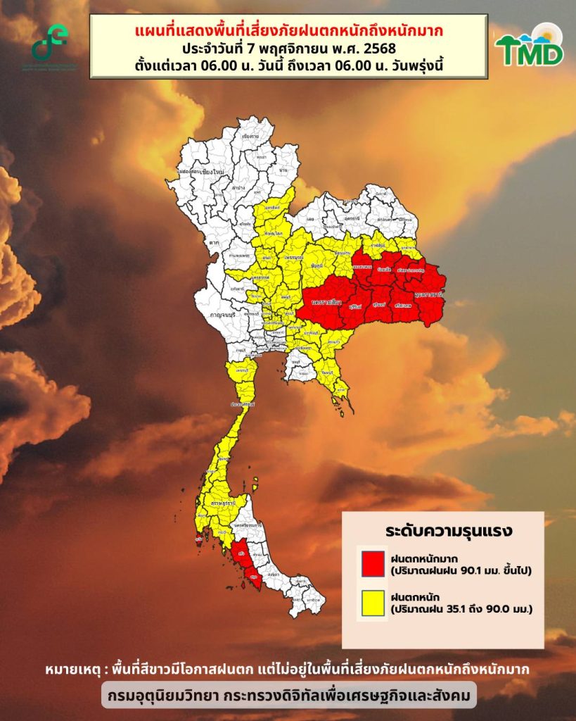 อีสาน ระวังฝนตกหนักหลายพื้นที่ ผลจากพายุคัลแมกี