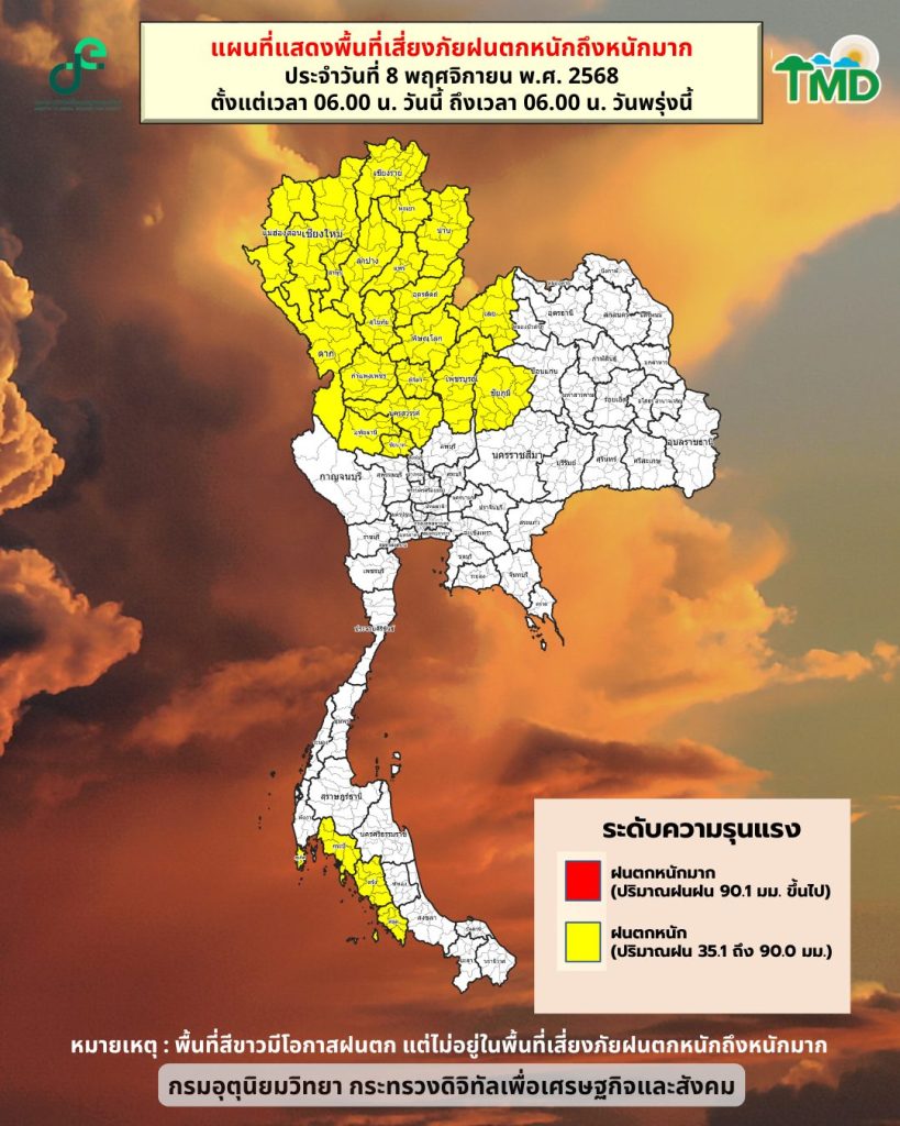 เนื่องจากหย่อมความกดอากาศต่ำที่อ่อนกำลังลงจากพายุ “คัลแมกี” (KALMAEGI) ปกคลุมบริเวณด้านตะวันตกของภาคตะวันออกเฉียงเหนือ และมีแนวโน้มจะเคลื่อนผ่านภาคกลางตอนบน และภาคเหนือ ตามลำดับ