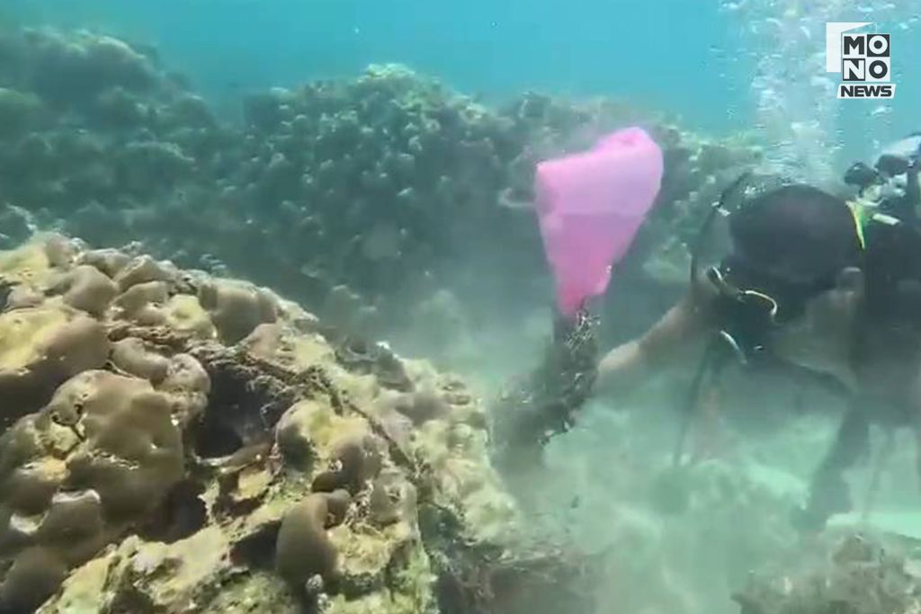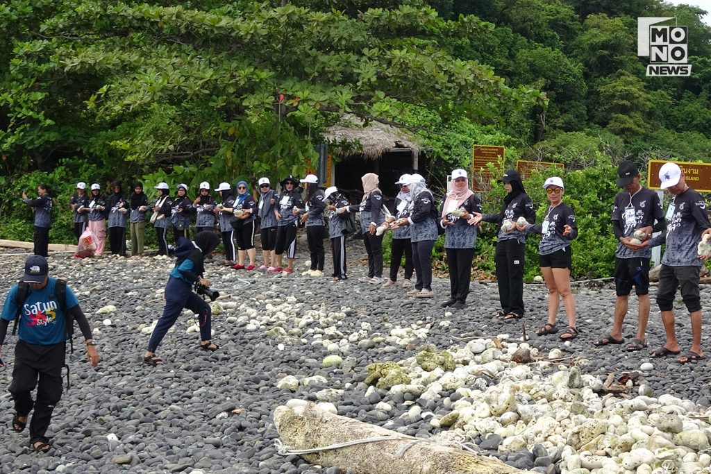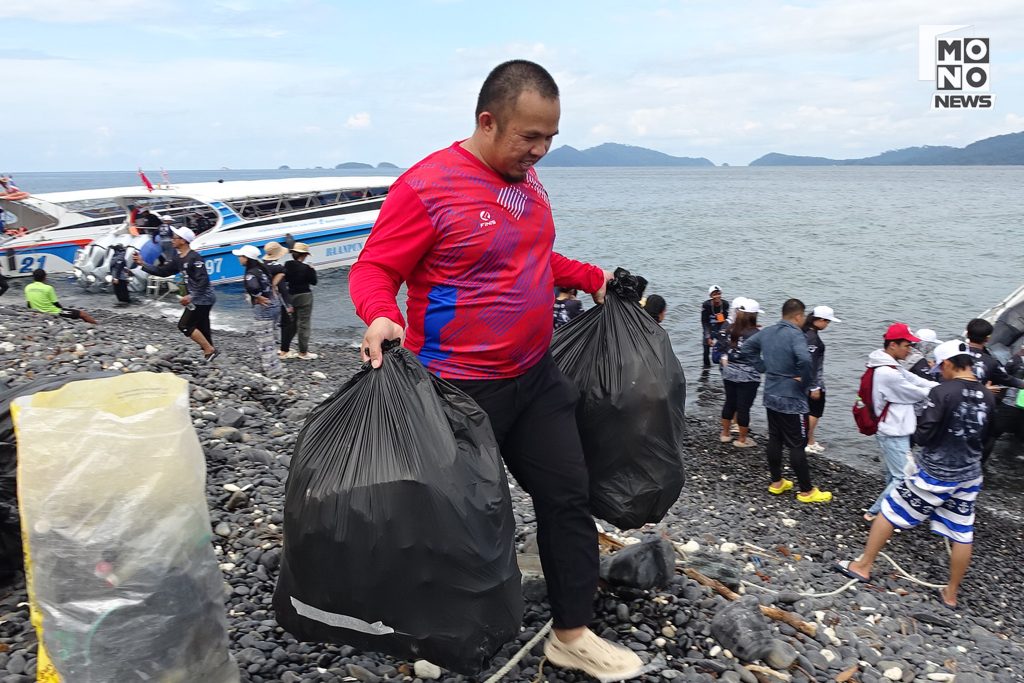 คณะจิตอาสาถูกแบ่งออกเป็นหลายกลุ่ม ทั้งทีมเก็บขยะบนเกาะและทีมนักดำน้ำลึกที่อาสาดำลงไปสำรวจใต้ท้องทะเล เพื่อเก็บขยะที่จมอยู่ใต้น้ำ โดยผลการสำรวจพบว่าขยะส่วนใหญ่มาจากเศษเชือกและเศษอวนจากเรือประมงจำนวนมาก บางส่วนขาดและจมลงใต้ทะเล พันติดแนวปะการังสร้างความเสียหาย ส่วนน้ำทะเลและคลื่นได้พัดพาขยะบางส่วนขึ้นมาตามชายหาดของหลายเกาะ ขยะเหล่านี้ถือเป็นขยะอันตรายที่ส่งผลกระทบต่อสัตว์ทะเลและระบบนิเวศโดยตรง จิตอาสาจึงเร่งช่วยกันลาก ดึง และรวบรวมขึ้นฝั่งอย่างเร่งด่วน