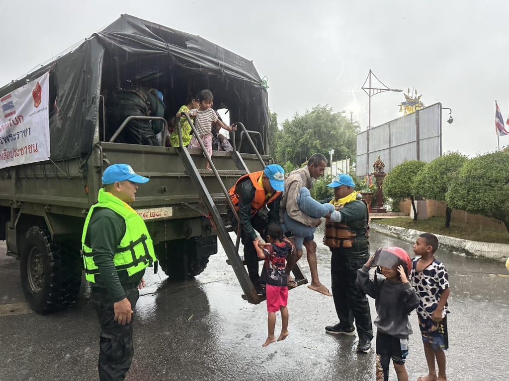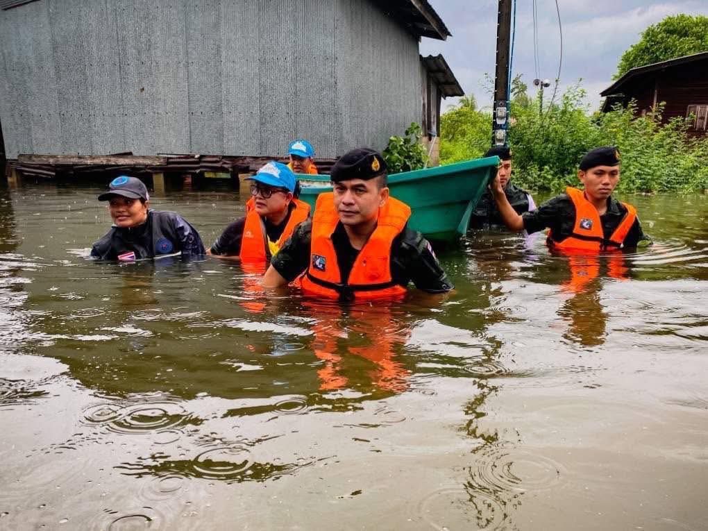 จังหวัดนราธิวาส : สถานการณ์น้ำที่ท่วมสูงเพิ่มมากขึ้นในอำเภอบาเจาะ ทำให้รถเล็กไม่สามารถสัญจรได้ กองพันทหารราบที่ 1 กรมทหารราบที่ 151 ได้จัดกำลังพลลงพื้นที่ช่วยอำนวยความสะดวกด้านการจราจร นอกจากนั้นในพื้นที่อำเภอเมืองนราธิวาส ได้จัดกำลังพล พร้อมยานพาหนะ ช่วยอพยพประชาชนกลุ่มเปราะบาง ได้แก่ ผู้ป่วยติดเตียง ผู้สูงอายุ และเด็ก ไปยังศูนย์พักพิงชั่วคราว