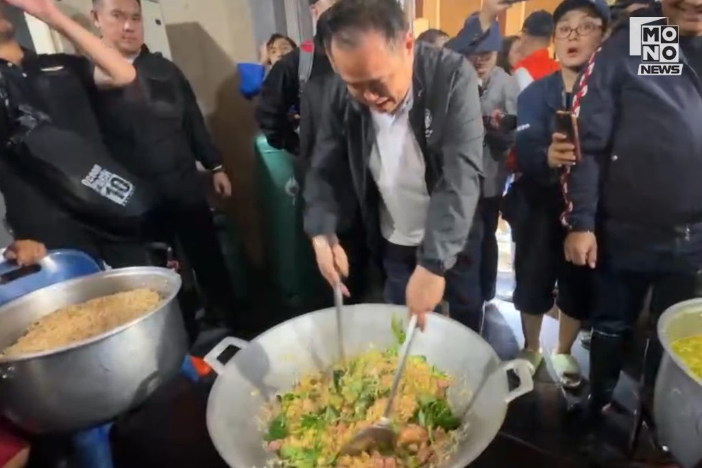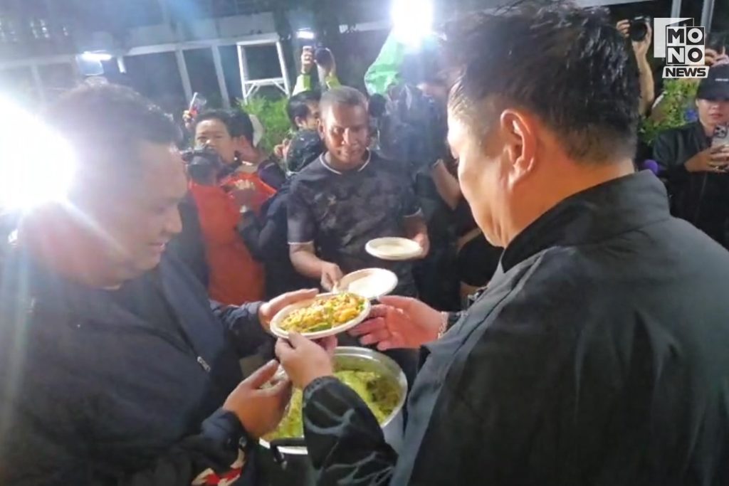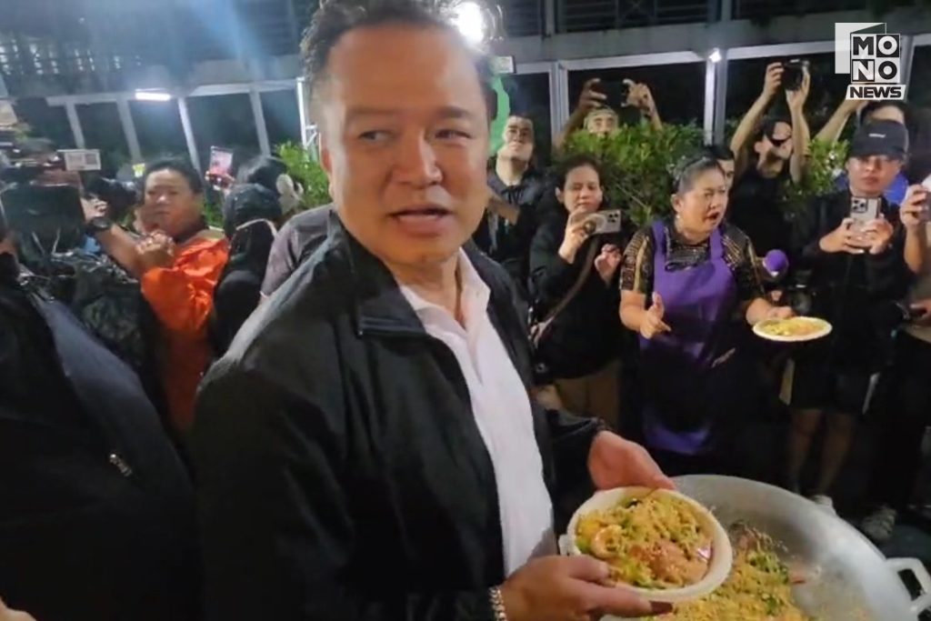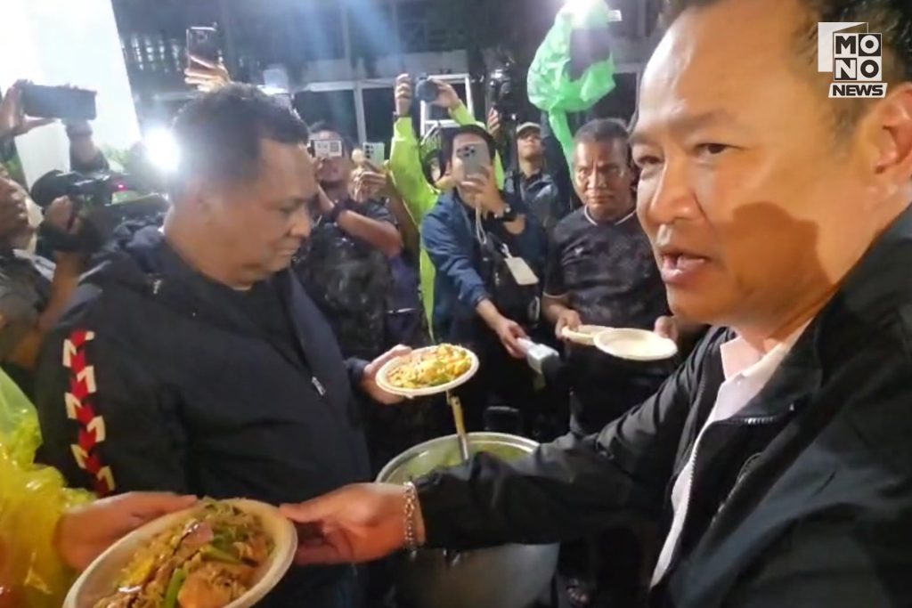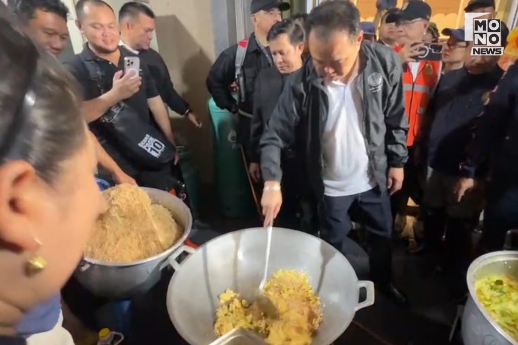 จากนั้นนายอนุทิน ได้มอบถุงยังชีพให้แก่ประชาชนที่อยู่บริเวณศูนย์พักพิง ก่อนเดินทางต่อไปยังศูนย์บัญชาการเทศบาลนครหาดใหญ่ ซึ่งเป็นศูนย์พักพิง และมีโรงครัวพระราชทาน โดยนายอนุทินได้ไปเยี่ยมผู้ประสบภัยและให้กำลังใจเจ้าหน้าที่ผู้ปฏิบัติงานที่โรงครัวพระราชทาน และแจกอาหารปรุงสำเร็จและถุงยังชีพให้กับประชาชนผู้ประสบอุทกภัย พร้อมโชว์ฝีมือผัดมาม่า และข้าวผัดไข่ แจกให้ผู้ประสบภัยและเจ้าหน้าที่รับประทานอีกด้วย ก่อนที่นายกฯจะนั่งรถสำรวจความเสียหายในพื้นที่ชั้นในของเทศบาลนครหาดใหญ่