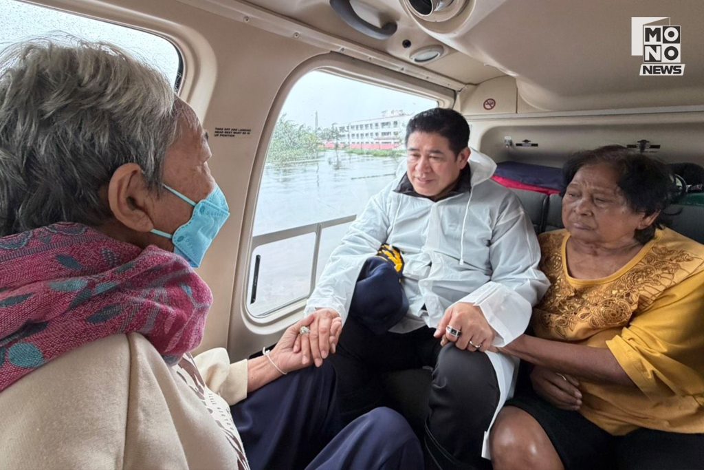ทั้งนี้ ระหว่างการลงพื้นที่ได้มีประชาชนในหมู่ 3 ตำบลขลุง ประสานขอความช่วยเหลือว่ามีผู้ป่วยสูงอายุ 2 ราย ไม่ได้ฟอกไตมาเกิน 5 วันหลังถูกตัดขาดจากถนนทุกทาง ร้อยเอก ธรรมนัส จึงสั่งการด่วนใช้เฮลิคอปเตอร์ของกระทรวงเกษตรฯ บินเข้ารับผู้ป่วยทันที และนำส่งโรงพยาบาลได้อย่างปลอดภัย จากนั้นจึงได้บินสำรวจพื้นที่โดยรอบและหาแนวทางในการใช้หย่อนอาหารลงไปให้กับประชาชนที่ติดค้างอยู่บนหลังคาบ้านจำนวนมาก