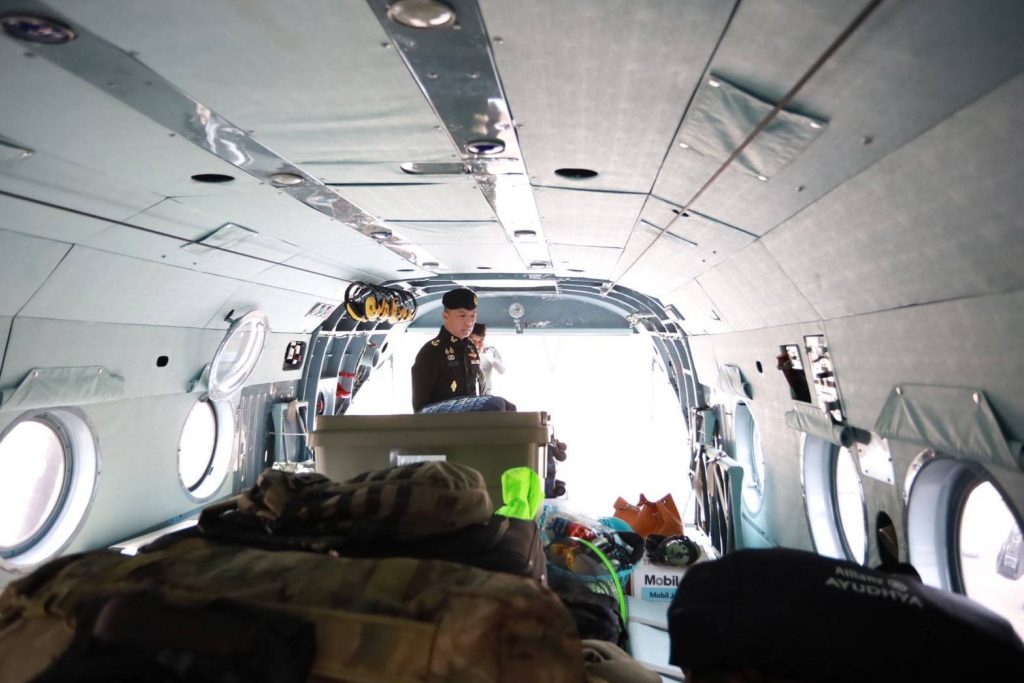 - หน่วยบัญชาการสงครามพิเศษ จัดกำลังชุดกู้ภัยทางอากาศ รวม 30 นาย พร้อมเครื่องมือ Rescue Platform สำหรับกู้ภัยทางอากาศ เดินทางด้วยเครื่องบินลำเลียงของกองทัพบก โดยจะถึงพื้นที่ประสบภัยและพร้อมปฏิบัติในช่วงเย็นวันนี้