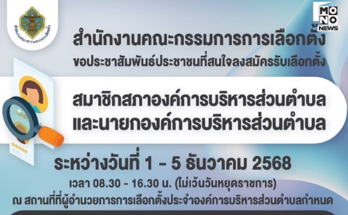 กกต. ขอเชิญชวนสมัครรับเลือกตั้ง สมาชิกสภา อบต. และนายก อบต. ระหว่างวันที่ 1 – 5 ธันวาคม 2568