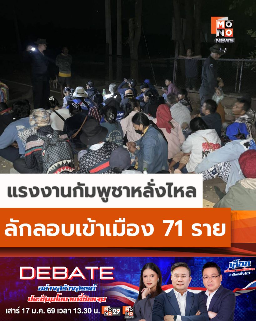 กองทัพเรือจับแรงงานกัมพูชาลักลอบเข้าเมือง 71 ราย ชายแดนจันทบุรี พลเรือตรี ปารัช รัตนไชยพันธ์ ชี้แรงกดดันจากปัญหาภายในประเทศเพื่อนบ้าน