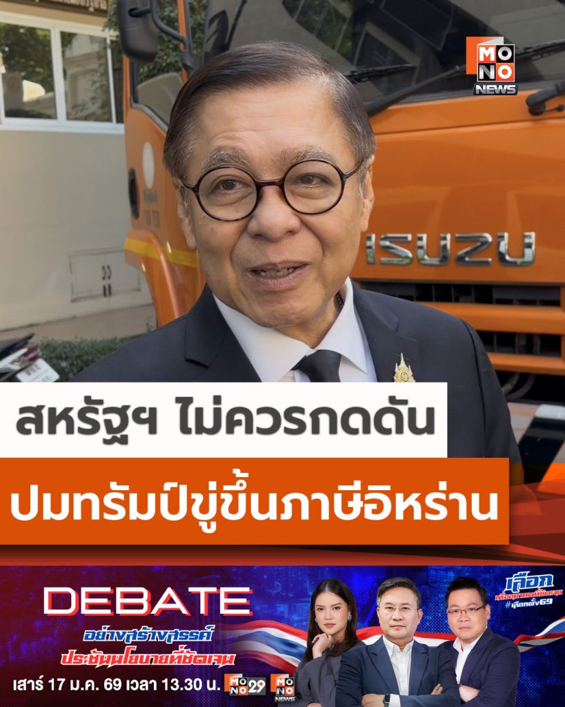 สีหศักดิ์ พวงเกตุแก้ว ระบุไทยไม่กังวลกรณีทรัมป์ขู่เก็บภาษีประเทศคู่ค้าอิหร่าน 25% ชี้เป็นสิทธิแต่ละประเทศ ย้ำสหรัฐฯ ไม่ควรกดดัน พร้อมห่วงเสถียรภาพอิหร่านและความปลอดภัยคนไทย