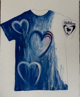 เสื้อหาเสียง ภูมิใจไทย จากฝีมือศิลปินชื่อดังมือรางวัลระดับชาติ เป็นผู้ออกแบบ มีแรงบันดาลใจมาจากคำว่า หัวใจคนไทยทุกดวงรักชาติ