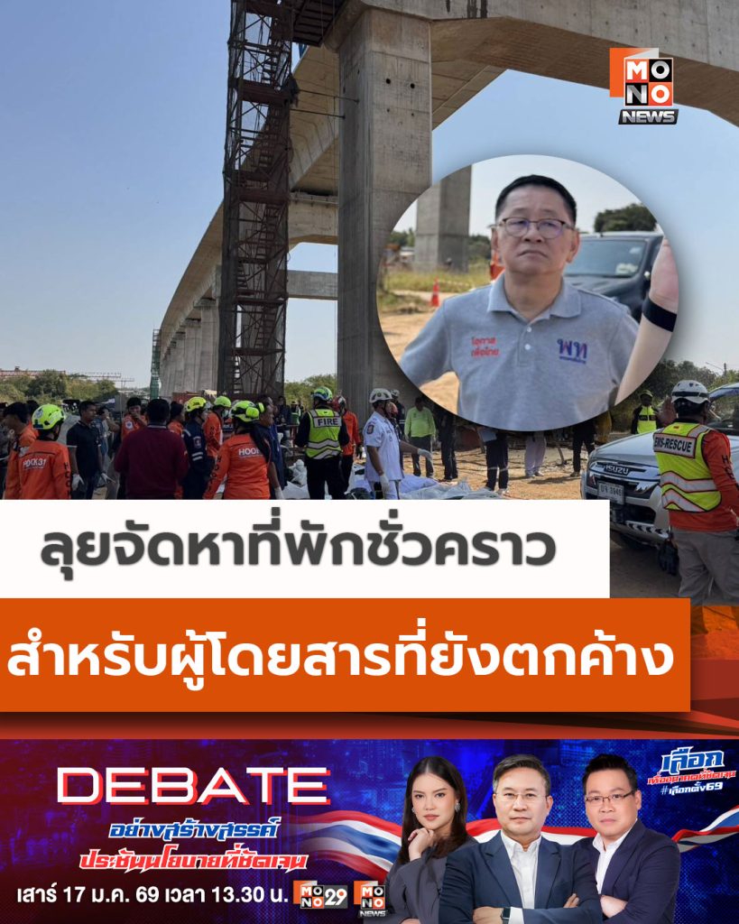 ประเสริฐ จันทรรวงทอง ลงพื้นที่สีคิ้ว ตรวจสอบเหตุเครนก่อสร้างถล่มทับรถไฟ เยี่ยมผู้บาดเจ็บ ประสานการรถไฟฯ จัดที่พักชั่วคราวผู้โดยสารตกค้าง